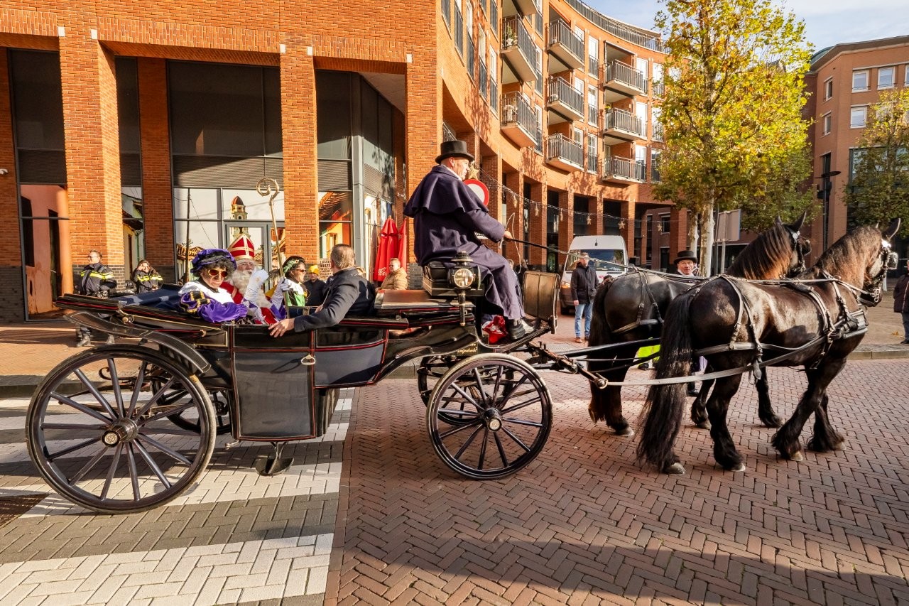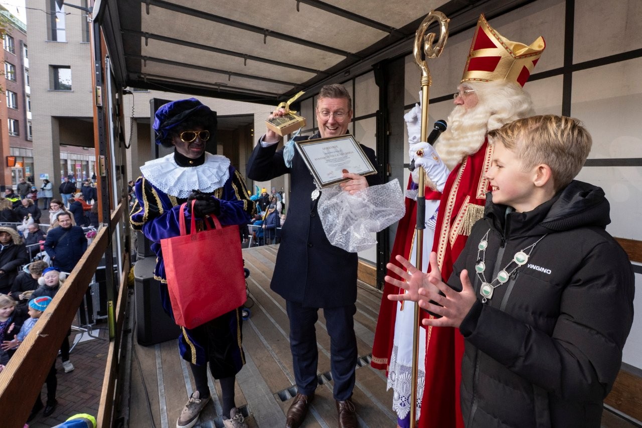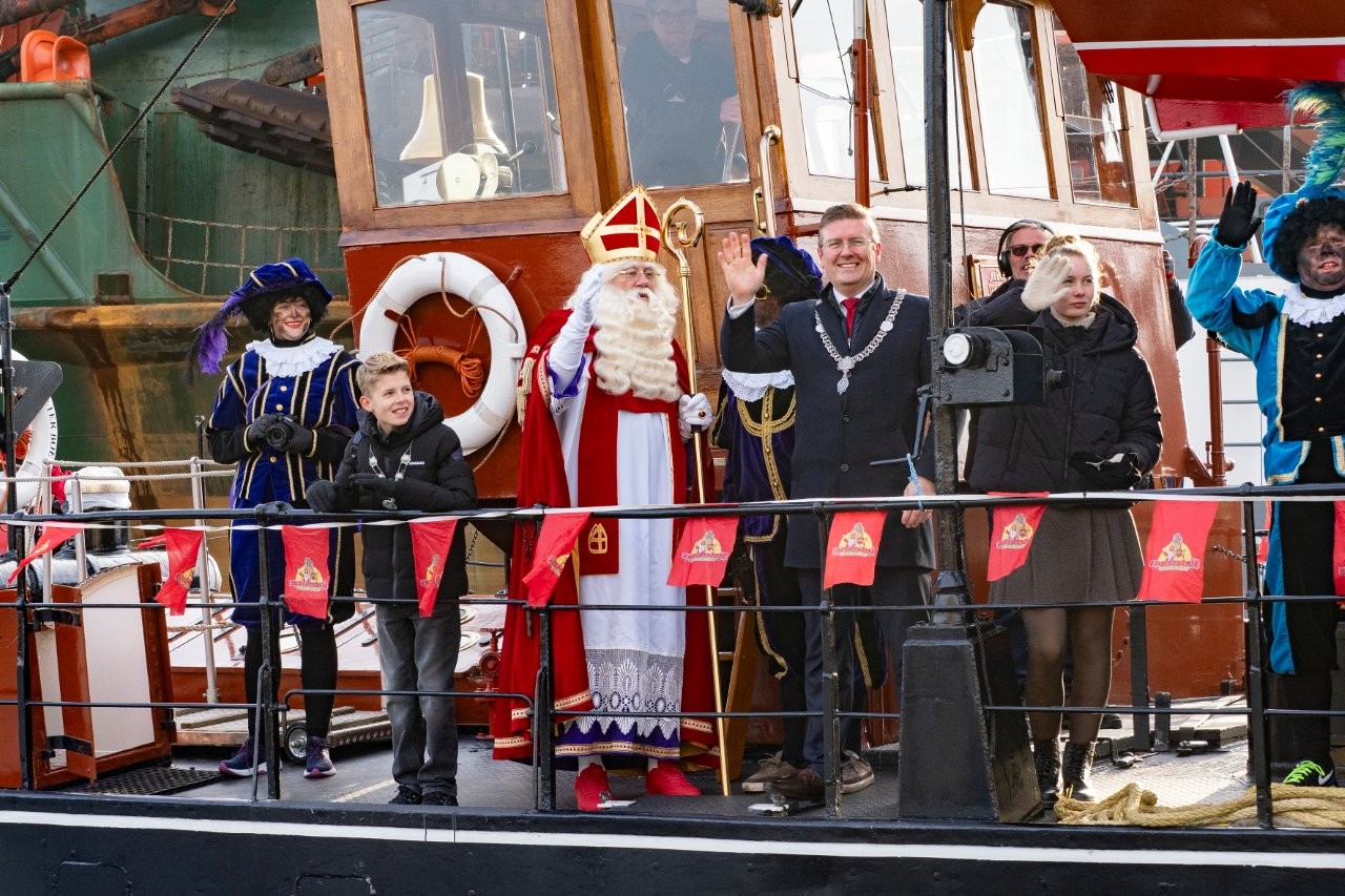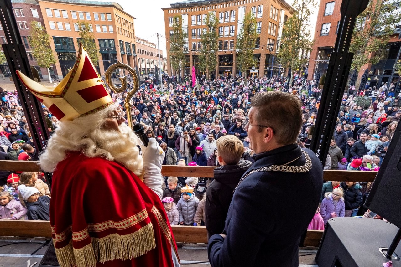 Na aankomst in Slikkerveer vertrok de Sint, samen met de burgemeester en de kinderburgemeester, richting het Koningsplein om daar het feest voort te zetten.