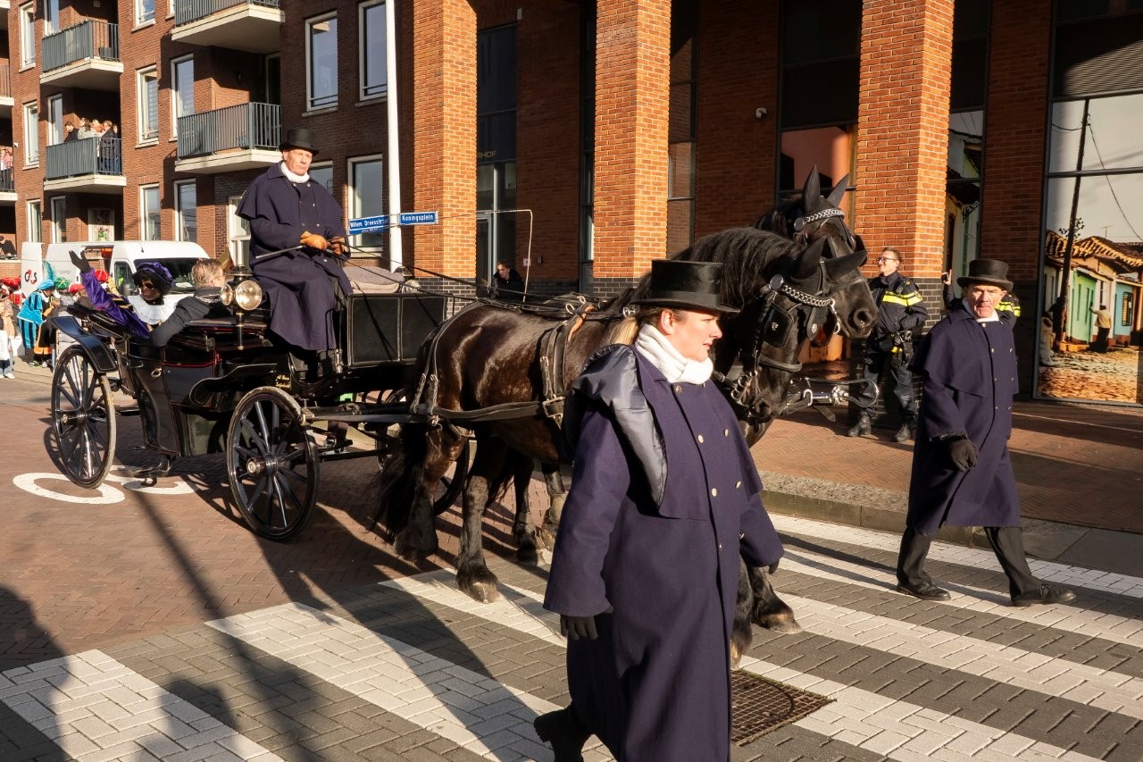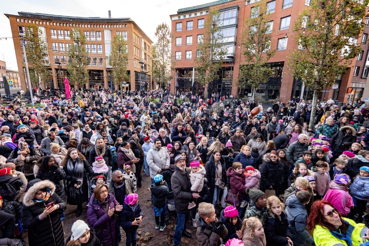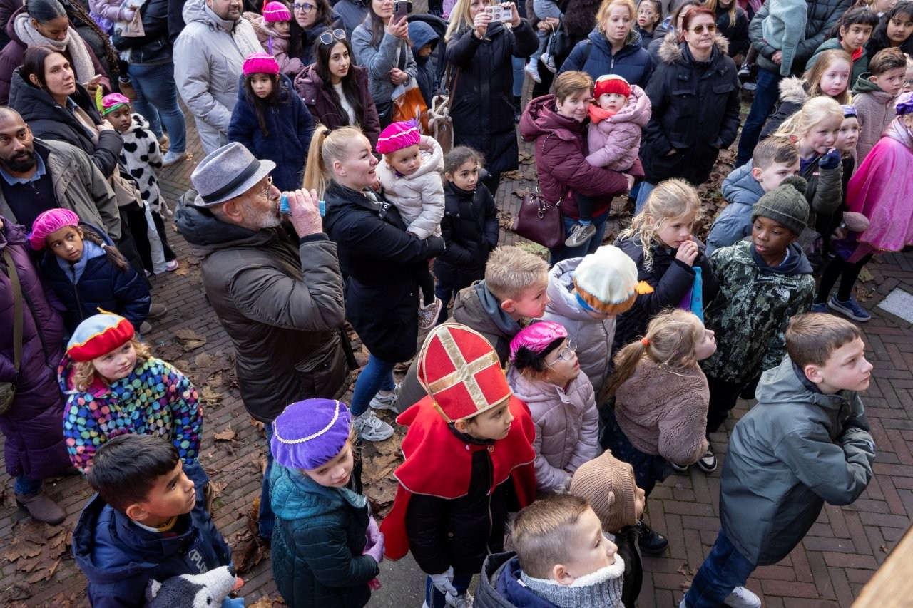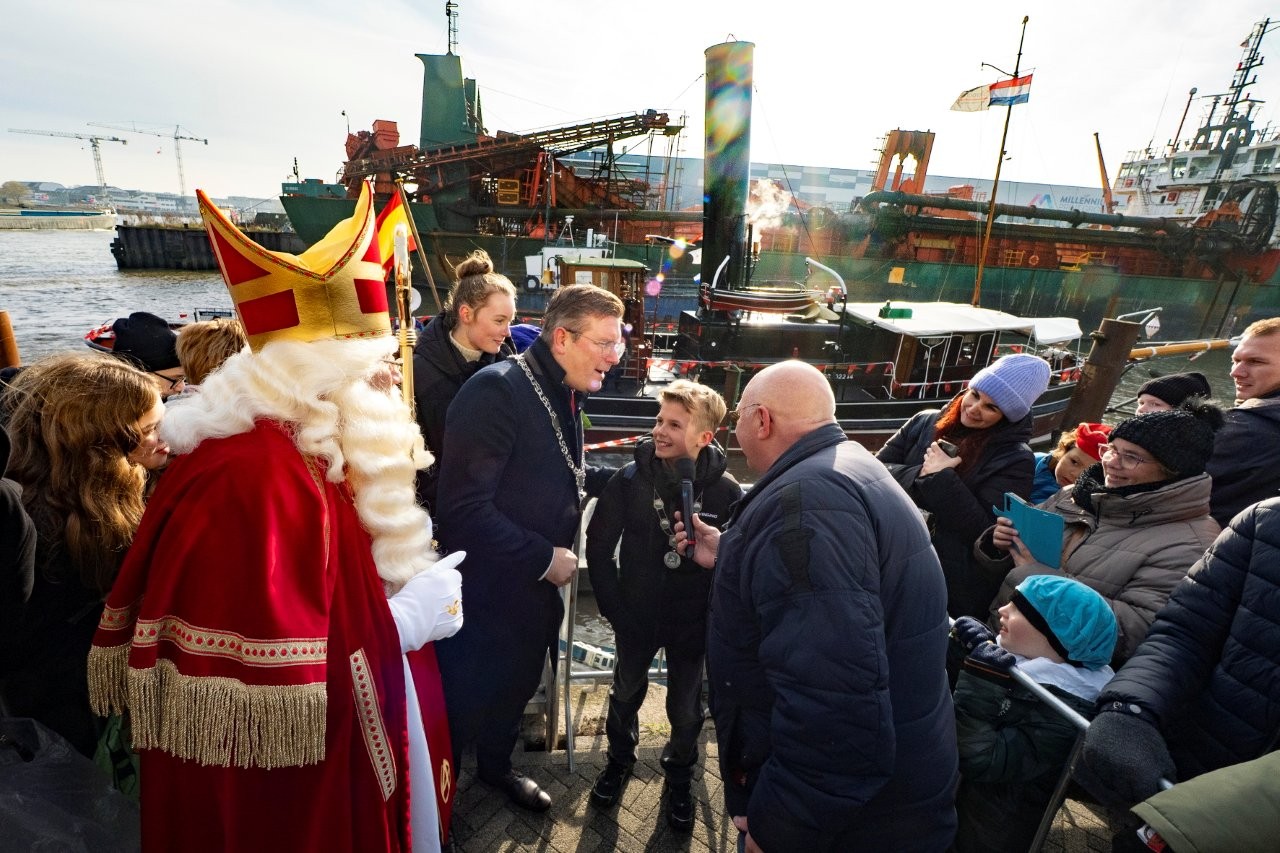 Na aankomst in Slikkerveer vertrok de Sint, samen met de burgemeester en de kinderburgemeester, richting het Koningsplein om daar het feest voort te zetten.
